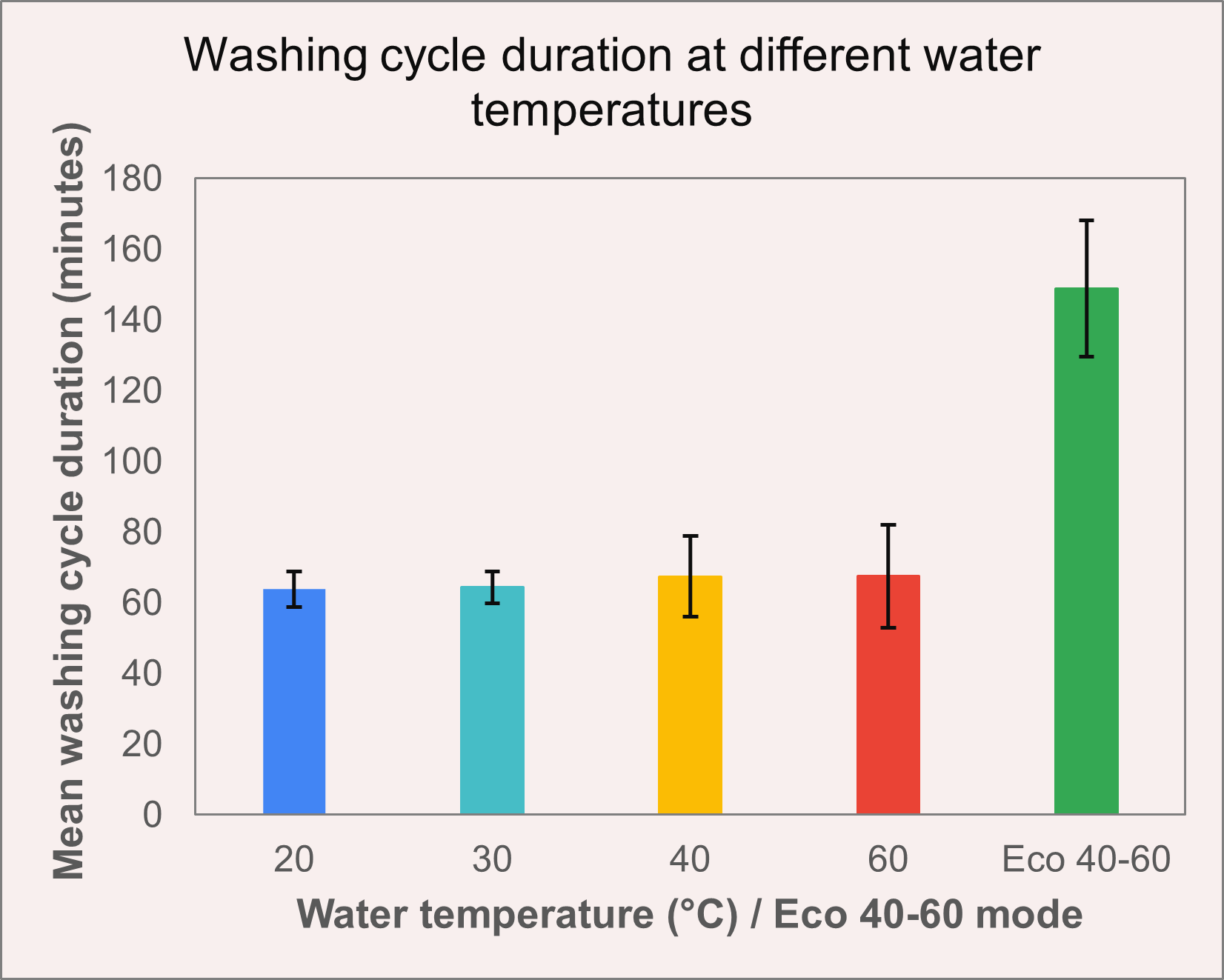 Figure 6: The graph shows the mean washing cycle duration using the Mixed Laundry mode (water temperature from 20°C to 60°C) versus the Eco 40-60 washing mode.