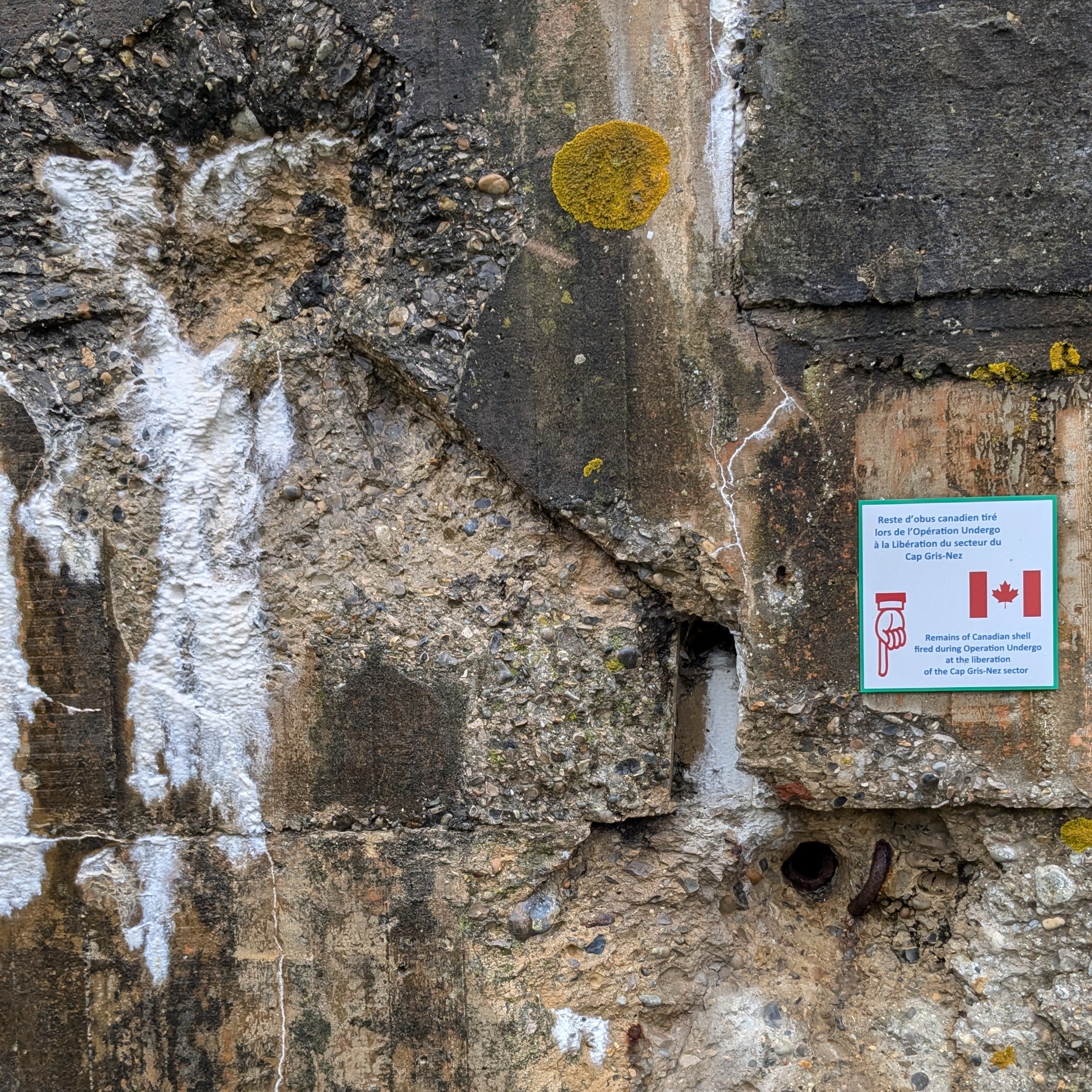 As a fan of WW II documentaries, this was something that I did not want to miss. It is an old battery of coastal artillery, now converted into a museum. The museum was setup by a private (Canadian?) foundation, to bring back the battery from ruins to an educational museum. You will learn about history of the battery, construction, life of soldiers in the battery and liberation of the region by Allied forces. One of the most interesting things I saw were the marks left on the walls of the battery during the liberation battle (as shown in an image below).